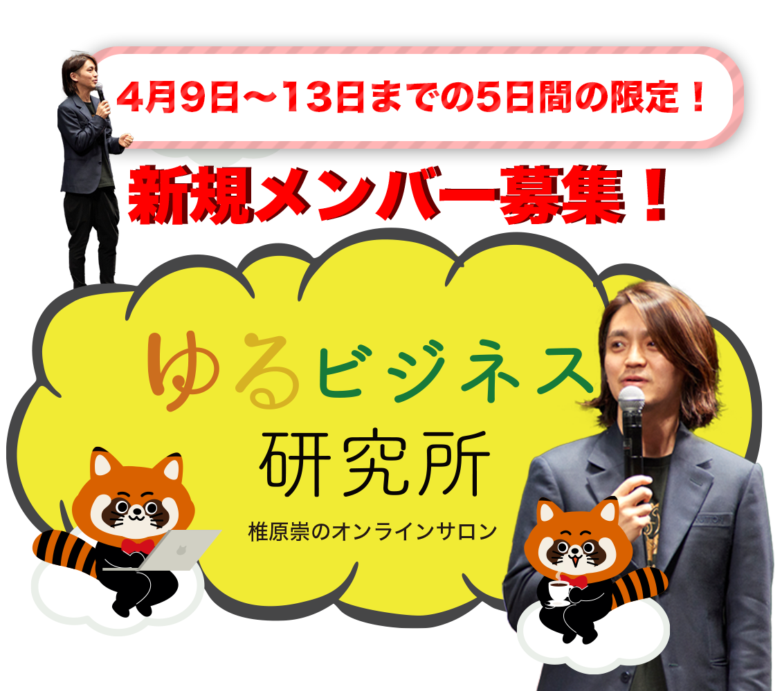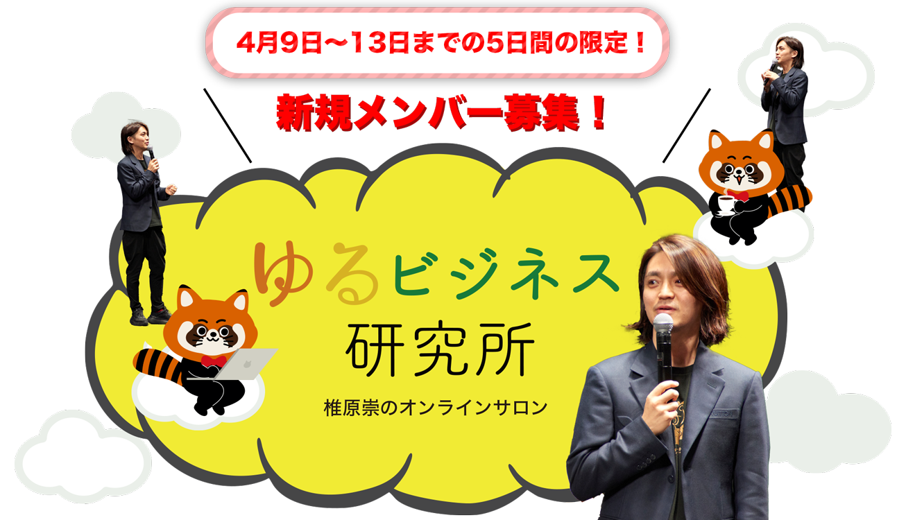 椎原崇が所長を務めるオンラインサロン”ゆるビジネス研究所”。